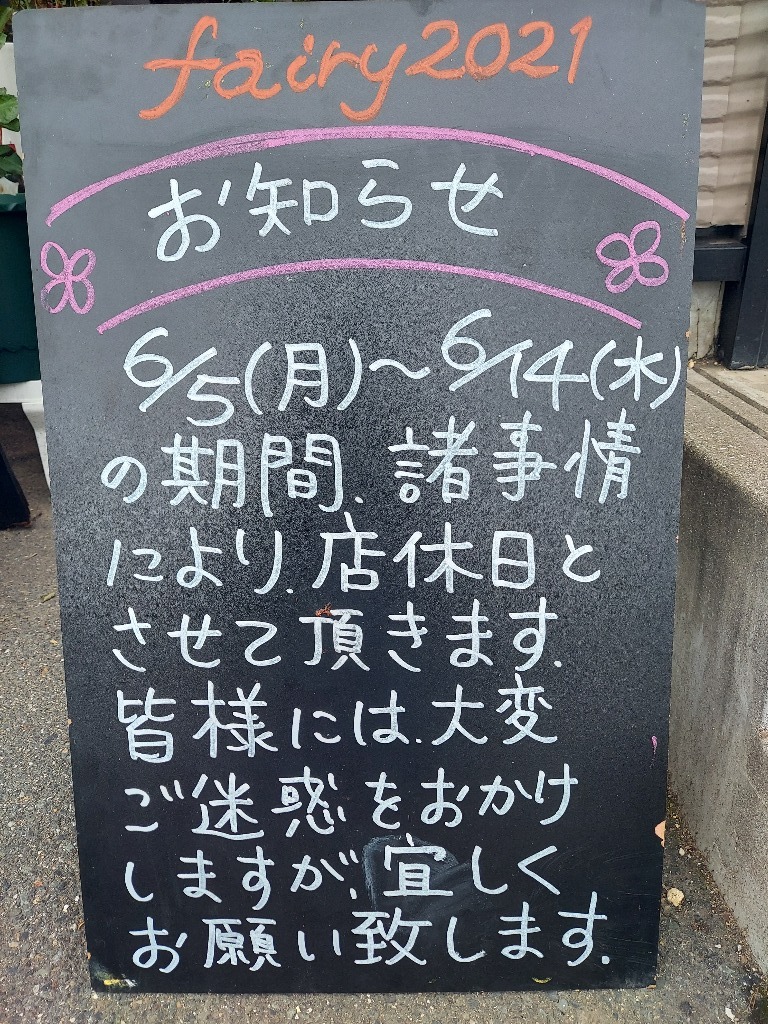 5月30日より暫くの間、休業とさせて頂きます