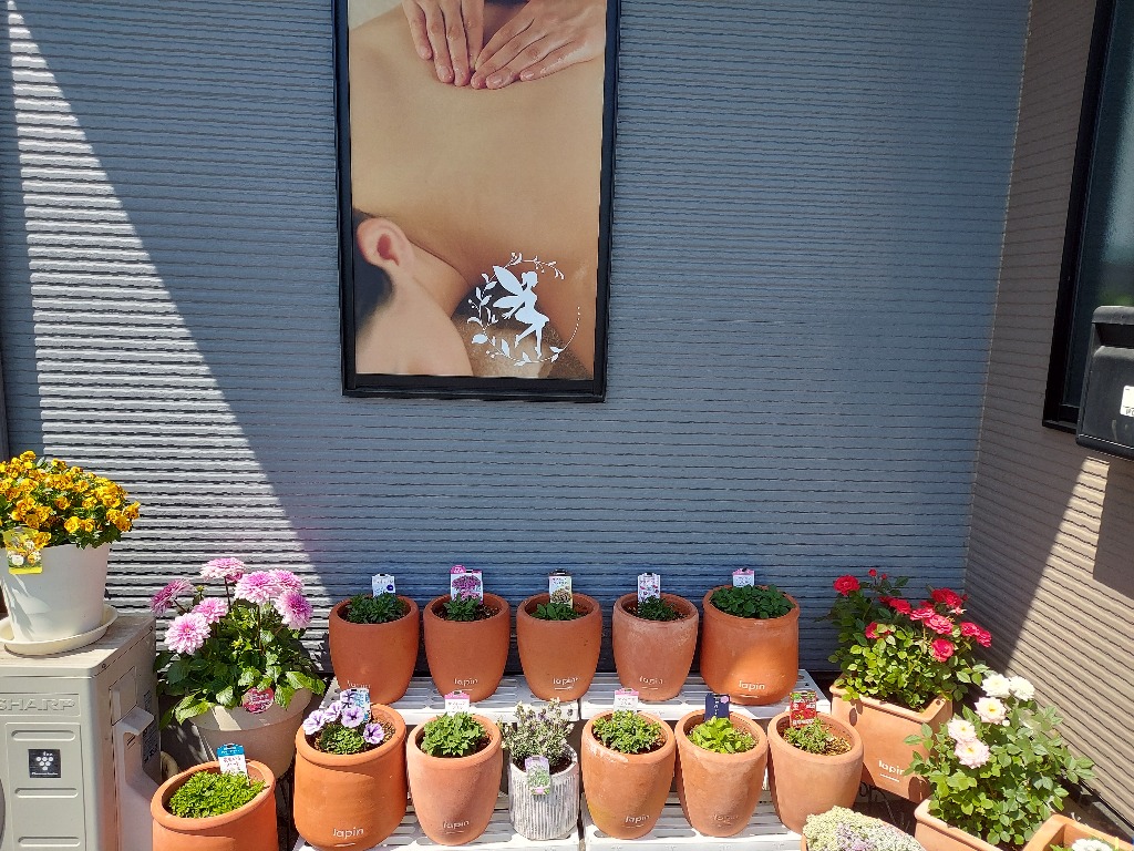 お店の外観も以前より華やかになりました。季節の花を飾って、植物からも癒しのパワーを感じて貰えたらと思っています。