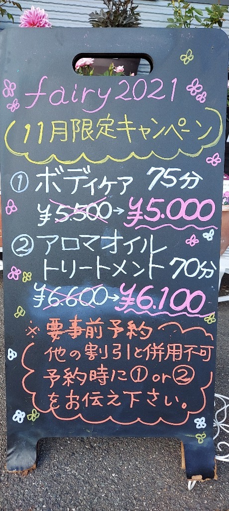 2022年4月5日で「fairy2021」オープンして一周年を迎える事になりました。コロナ禍で大変な時期も有りましたが、感染予防対策をしながら来店頂けるお客様に心身共に楽になって帰って頂ける様努めて参りました。